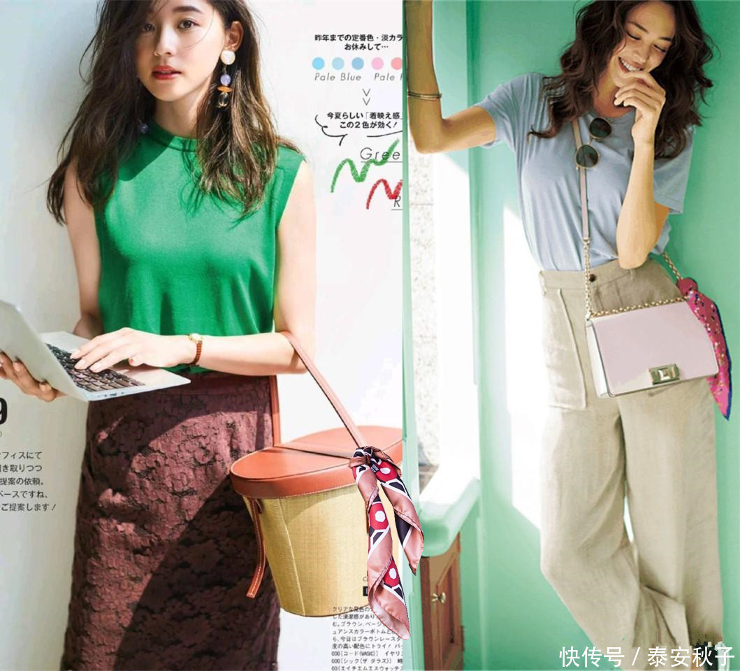一定别健忘关心丝巾的功劳哦。举例一款花色复旧的桑蚕丝丝巾,径直点缀在质感包包的带子上头,便能匡助看起来略显单调的正常穿搭,特有又亮眼。
