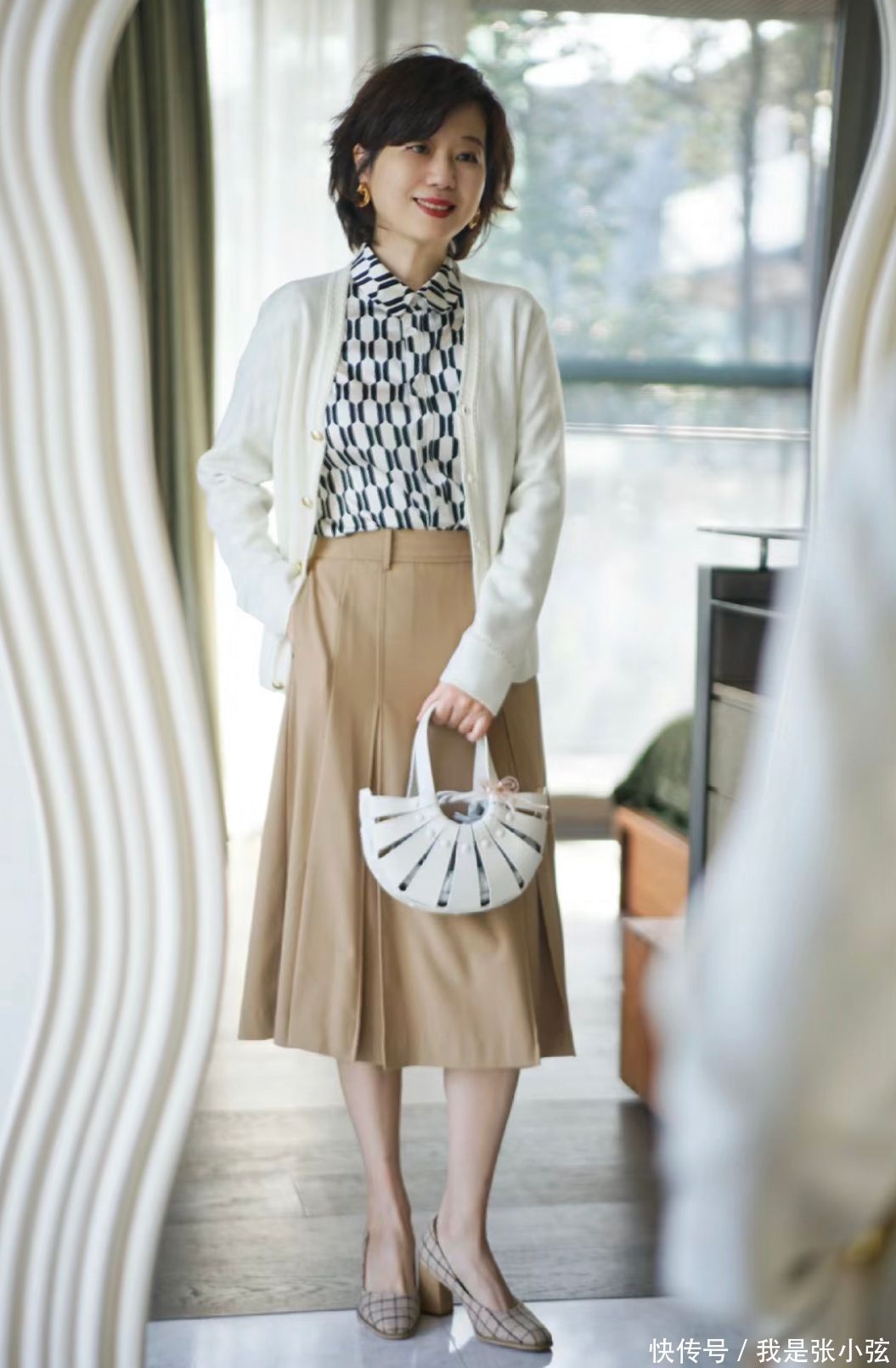 相同是真挚开衫,但是像这种奶白色的开衫,看上去就会愈加惬意养眼,跟花里胡梢的开衫比起来,抬气质不少。真挚开衫自身即是中年女东谈主的外衣首选,不管是单穿还是叠穿齐很考究,而且搭配半身裙不错彰显出优雅讲理的一面,搭配直筒长裤,又不错穿出利落干脆的成果。